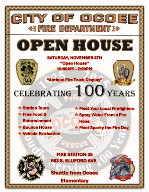 The Ocoee Fire Department will hold its annual Open House on Saturday, November 8 from 10 a.m. to 2 p.m. ...