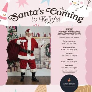 Santa's coming to Kelly's! FREE Photos with Santa courtesy of Cannonfire Photography at select Scoop Shops. Save the date to ...