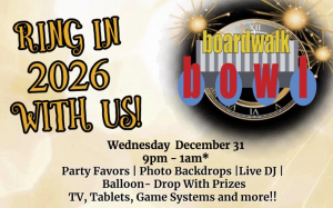 Ring in the new year with us at Boardwalk Bowl! From 11-6pm families can enjoy 3 games of bowling, shoe ...